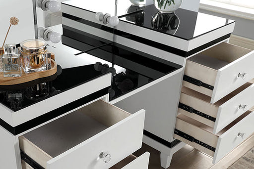 Take modern glam to new heights with the bold contrast and sophistication of this contemporary vanity desk. With six roomy drawers for easy storage...