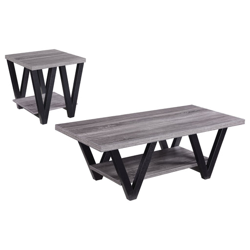 This 2-piece end table set makes it hip to be square. Bold, blocky profile is enriched with plank-effect styling and a textured grayish brown finis...